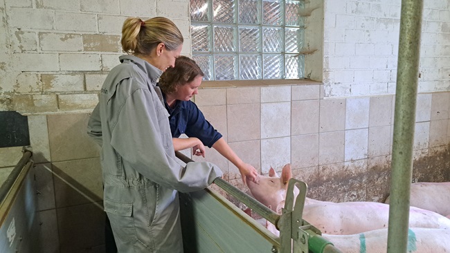 Uiteindelijk doel in Gronau is het herkennen van ongewenst gedrag van zowel de dader als de ontvanger van het gedrag. Hierin wordt dan ook volop ontwikkeld. Nuphaus vertelt dat herkennen van gedrag best een uitdaging is. “Wanneer is iets agressie en wanneer is iets nieuwsgierigheid? Die grens is met het blote oog vaak al moeilijk te zien, laat staan dat AI dat moet doen. Maar we hebben al enorme stappen gemaakt, ook dit gaat lukken”, vertelt Nuphaus terwijl ze realtime naar de gegevens van een van de voerstations kijkt. “Ik zie dat er nu een varken aan het vreten is. Dat zal deze zijn”, vertelt ze terwijl ze naar het camerabeeld op het andere scherm wijst.