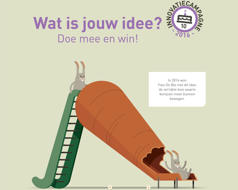 De Innovatiecampagne 2016 richt zich op innovatieve ideeën en projecten van land- en tuinbouwers in de meest ruime zin van het woord. Het kan gaan om productinnovatie en procesinnovatie, om dieren- en plantenwelzijn, om nieuwe concepten voor neventakken op land- en tuinbouwbedrijven, om oplossingen voor milieuproblematieken, om zelf ontworpen mechanisatie of technologie, om ideeën voor de toepassing van nieuwe technologieën ( zoals smartfarming of big data) …
