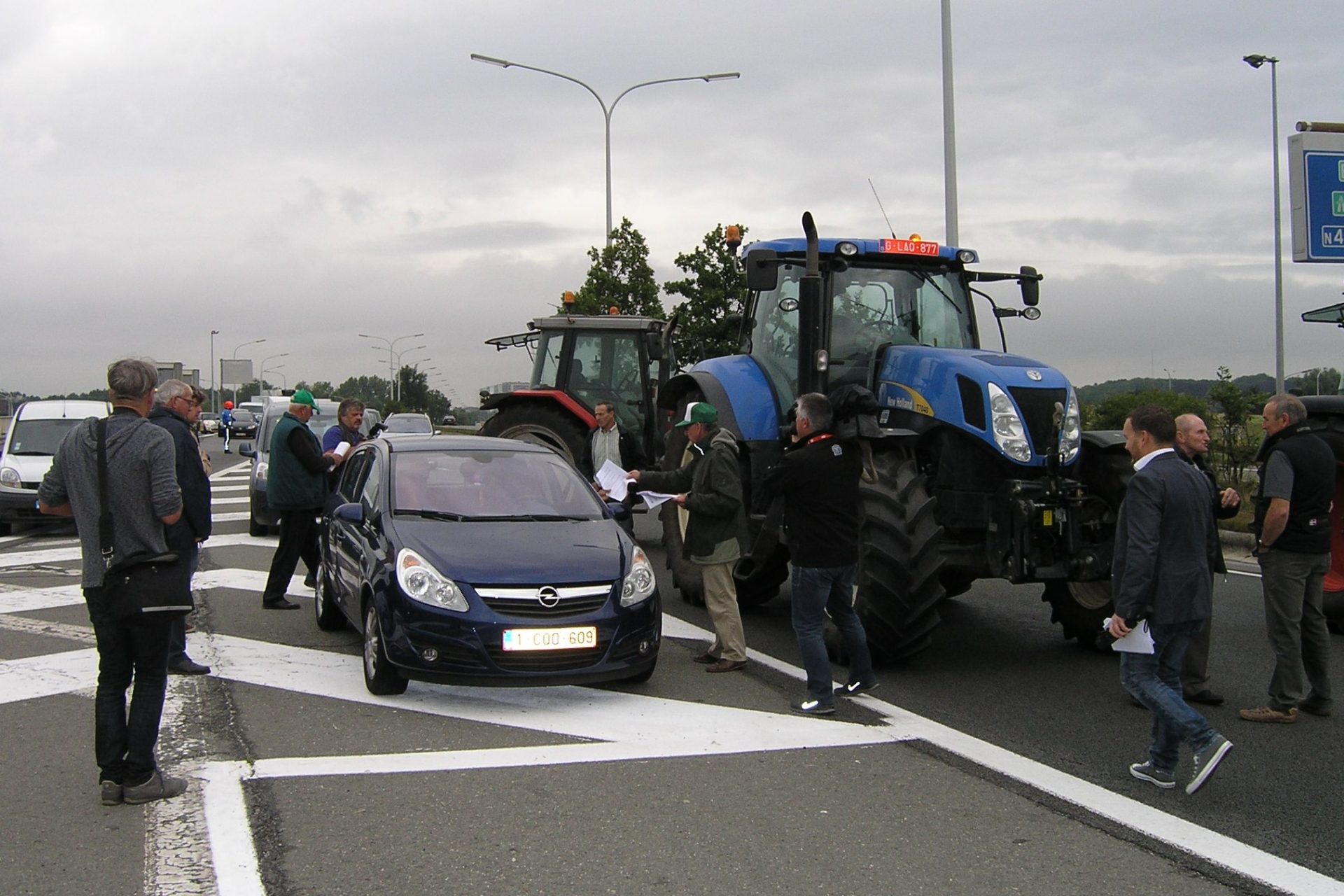 Het Algemeen Boerensyndicaat zet vandaag verspreid over de dag en over heel Vlaanderen een aantal filterblokkades op. In Sint-Niklaas (foto) waren een 20-tal tractoren van de partij.
