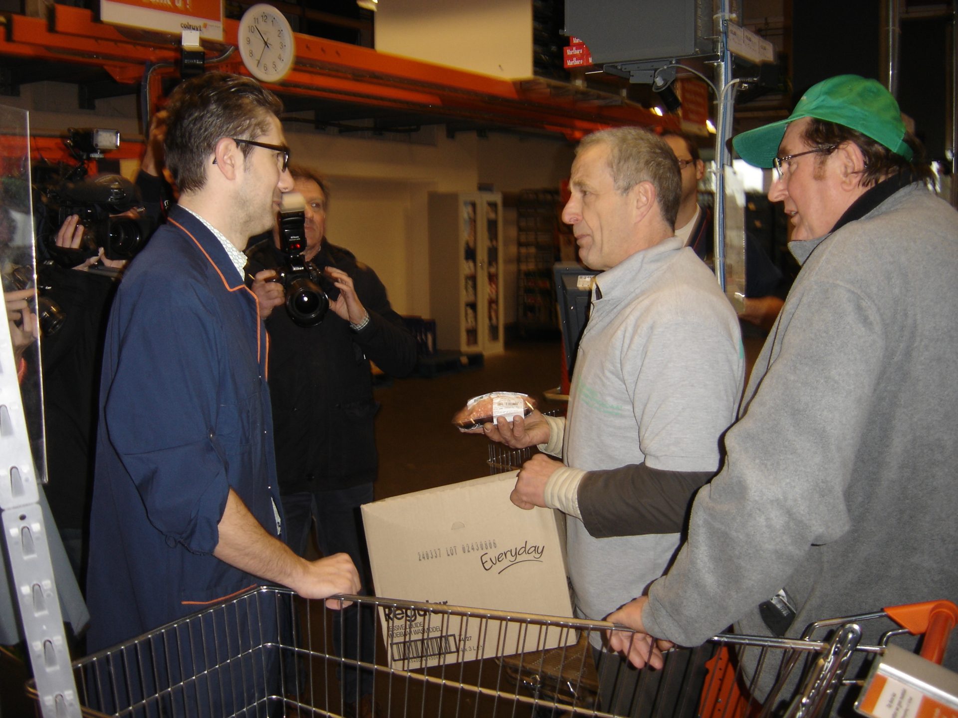 Bij wijze van ludieke actie meldden de aanwezige varkenshouders zich dan ook bij de kassa aan om de gratis halve kilo’s varkensvlees te kopen.