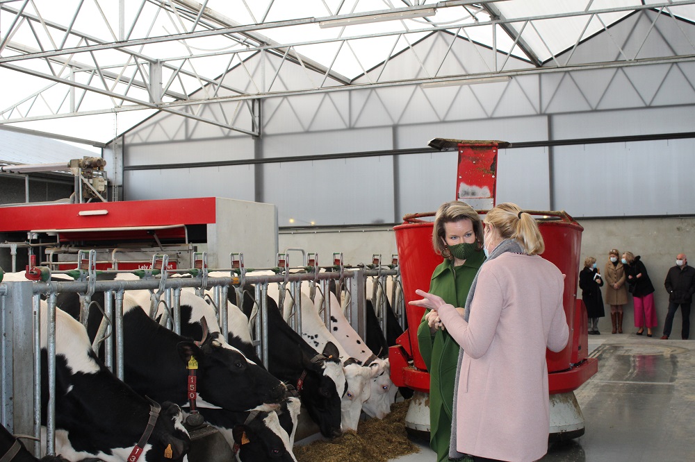 Na afloop van dat gesprek bracht de koningin nog een kort bezoek aan de stallen op het melkveebedrijf met innovatieve technieken zoals een automatische voederrobot, een melkrobot en een biogasinstallatie. Het bedrijf is een toonbeeld van duurzame melkveehouderij.