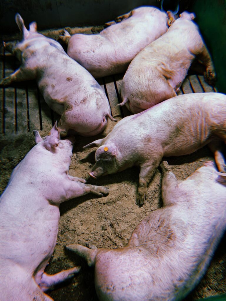 Lotte De Prekel: “Hittestress is een toestand waarbij het lichaam zijn temperatuur niet langer op peil kan houden. Het probleem duikt steeds vaker op bij landbouwdieren wegens de wereldwijd toenemende temperaturen. Varkens worden voornamelijk in stallen gehouden en zijn extra kwetsbaar voor hitte omdat ze amper kunnen zweten. Net als mensen moeten ze hun lichaamstemperatuur zo constant mogelijk trachten te houden. Wanneer hun omgeving te warm is – zeker samen met een hoge luchtvochtigheid – kunnen ze hun overtollige warmte moeilijk kwijt. Ze gaan hijgen en zoeken koelere plekjes op in het hok.”