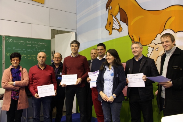 Gisteren overhandigde Dierengezondheidszorg Vlaanderen op Agribex de eerste Gezondheidsmonitorrapporten Gelten aan enkele fokbedrijven van TOPIGS die reeds jaren een gezondheidsscreening doen bij DGZ.