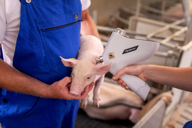 De meeste beschikbare vaccins zijn bedoeld voor intramusculaire toediening (in de spier) met een injectienaald. Hierbij is de naaldlengte en hoek waaronder gevaccineerd wordt van essentieel belang. Een lange naald kan afbreken en trekt eerder krom, maar is vaak wel nodig om het juiste weefsel te bereiken. Bij gebruik van een korte naald moet men zich afvragen of het vaccin wel daar komt waar het moet zijn, namelijk in het spierweefsel en niet in het onderhuidse vet. Idealiter dient vaccineren met een injectienaald in de nek onder een hoek van 90 graden toegediend te worden. Een aantal vaccins zijn geregistreerd om intradermaal (in de huid) geïnjecteerd te worden zonder naald. Bij intradermaal vaccineren wordt het vaccin met een injectietoestel, de Hipradermic® onder druk ingespoten, waardoor automatisch de juiste hoeveelheid van 0,2 ml op de juiste diepte in de huid wordt gebracht. Hierbij wordt ziekteoverdracht door de naald vermeden en is het afbreken en vervangen van naalden verleden tijd. - Aanmaken van levend vaccin