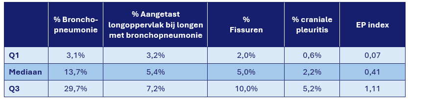 • EP-index: deze index geeft informatie over de aanwezigheid en de omvang van bronchopneumonie letsels en moet zo laag mogelijk zijn.