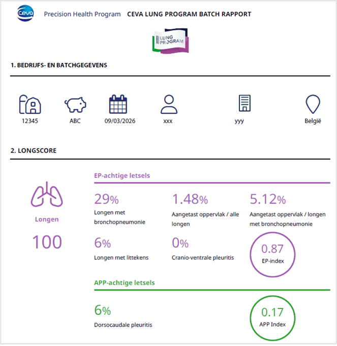Gemiddeld genomen scoren Belgische bedrijven goed op het gebied van longgezondheid, maar toch laten sommige bedrijven nog steeds aanzienlijke bedragen liggen door longaandoeningen. De eerste stap om verliezen door luchtwegaandoeningen te beperken, is inzicht krijgen in de huidige situatie. Longonderzoek is daarbij een waardevol instrument. Op basis van de resultaten kunnen dierenarts en varkenshouder samen een gericht verbeterplan opstellen.