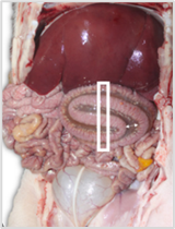 Maar een definitieve diagnose kan alleen gesteld worden op basis van diagnostiek, een sectie geeft daarbij het meest complete beeld. Bij C. difficile infecties wordt regelmatig oedeem van het mesocolon gezien (zie foto).