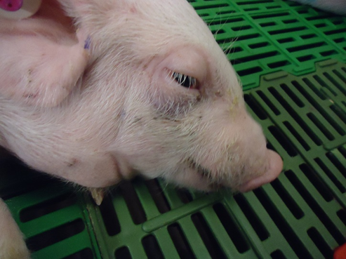 Slingerziekte komt meestal voor op de batterij, 5 tot 14 dagen na spenen, maar kan ook kort na opzet in de vleesvarkensstal voorkomen. Bijna elke varkenshouder is al eens in contact gekomen met de klinische vorm van slingerziekte. Vaak wordt er plotse sterfte opgemerkt. De biggen vertonen een verminderde eetlust en soms diarree. Typisch is een onderhuidse zwelling aan de kop en vooral de oogleden (foto 1). Door de zwelling in de hersenen wordt ook soms de coördinatie bemoeilijkt, waardoor de biggen ongecontroleerd voortbewegen of ‘slingeren’. Vandaar de naam slingerziekte. In ernstige gevallen is zelfs rechtstaan onmogelijk of maakt het dier fietsbewegingen. Onderscheid met een Streptokokken infectie is dan niet altijd eenduidig te maken.