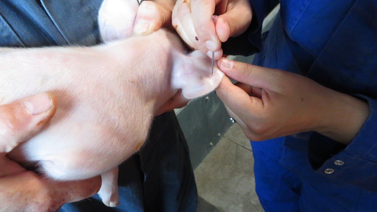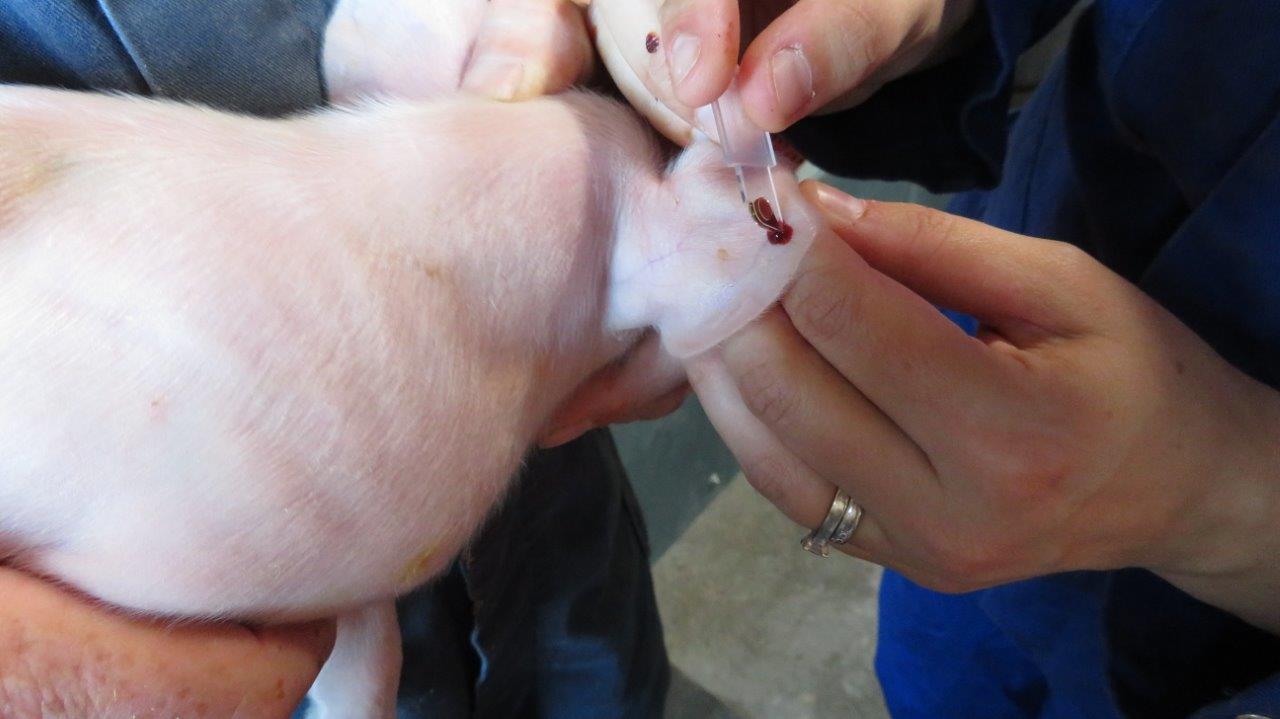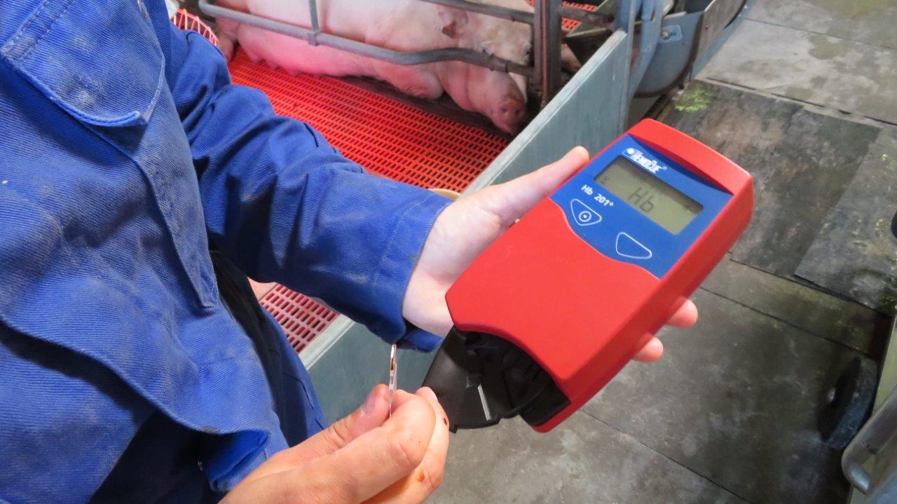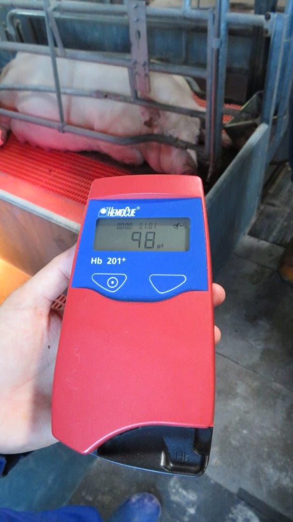 Door gebruik te maken van een draagbaar HemoCue® meettoestel kan men de hemoglobine niveaus op een snelle en eenvoudige manier meten. Deze metingen kunnen op het varkensbedrijf zelf uitgevoerd worden. Voor de meting is slechts één druppel bloed nodig, die kan verkregen worden door het aanprikken van een bloedvat in het oor. De druppel bloed wordt vervolgens opgezogen in een teststrip die in het meettoestel wordt geplaatst. De hemoglobinewaarde kan binnen de minuut rechtstreeks op het meettoestel afgelezen worden. Hemoglobine gehaltes ≥ 110 g/l worden beschouwd als optimaal, waarden ≥ 90 en < 110 g/l zijn suboptimaal en biggen met een hemoglobine gehalte < 90 g/l hebben klinische bloedarmoede.