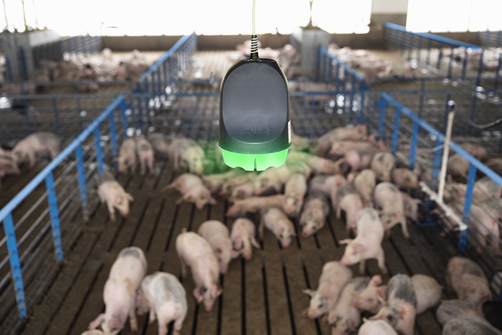 Sinds 2019 heeft het farmabedrijf Boehringer Ingelheim een participatie in het bedrijf SoundTalks. Dat bedrijf, een spin-off van de KULeuven, ontwikkelde de gelijknamige SoundTalks- technologie. Stijn Leenknegt, key account manager Swine bij Boehringer Ingelheim, legt het principe uit: “De SoundTalks-monitoren zijn microfoons. Die worden opgehangen op strategische plekken in de varkensstal. Deze monitoren capteren 24/7 alle geluiden die in de varkensstal worden waargenomen. Het systeem is gebaseerd op een algoritme om het hoesten te onderscheiden van andere geluiden in een varkensstal. Zo detecteert het objectief een toename van hoestgeluiden, wat kan wijzen op ademhalingsproblemen. In de monitor gebeurt een eerste analyse, waarna de relevante gegevens worden doorgestuurd naar de gateway. Dat toestel staat draadloos in verbinding met alle monitoren. In de gateway worden de gegevens gebundeld en naar de server doorgestuurd, waar de uiteindelijke analyse van de waargenomen geluiden gebeurt. De feedback wordt dan via de gateway teruggestuurd naar de monitoren. Deze monitoren geven via gekleurde LED’s de huidige status van de afdeling weer: groen, oranje of rood. Naast die permanente visuele status in de afdeling ter plaatse krijgt de varkensboer ook waarschuwingen op zijn smartphone. Op een portaalwebsite worden ook alle data bewaard, en het is mogelijk om de bedrijfsdierenarts toegang te geven. Zo kan men de situatie ook opvolgen en/of ingrijpen.”