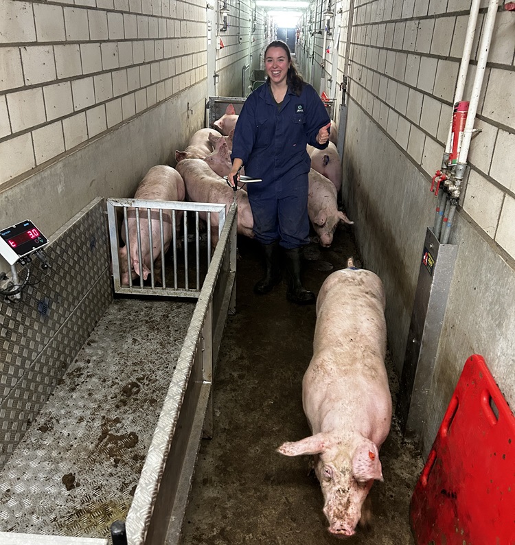 Wegen is een terugkerend onderdeel in de proeven van AHV op het bedrijf van Wilmsen. Op de foto stagiaire Lisa Fellezou tijdens de proeven met AHV Qure Protect.