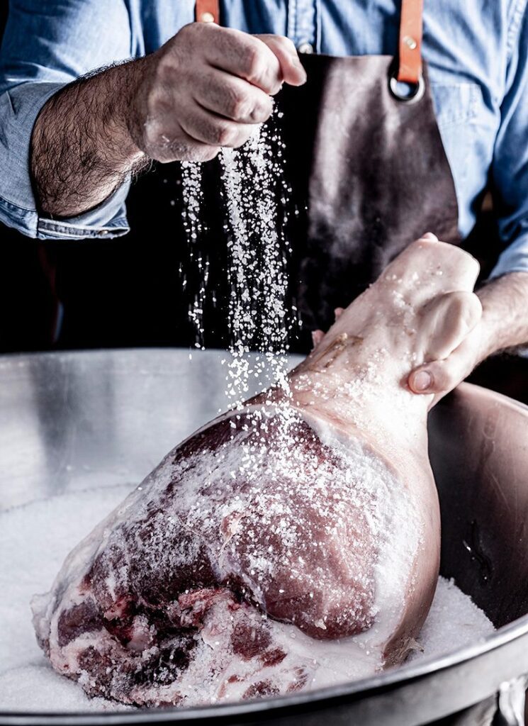 Vervolgens worden ze ontzout, gewassen en aan kaders gehangen om twee maanden te rijpen in gekoelde ruimtes. Daarna drogen ze verder in licht geventileerde kamers bij gecontroleerde temperatuur. Na 10 weken wordt de zijkant bij het been ingewreven met smout (reuzel), zodat de ham gelijkmatig verder kan drogen tot 10 maanden.