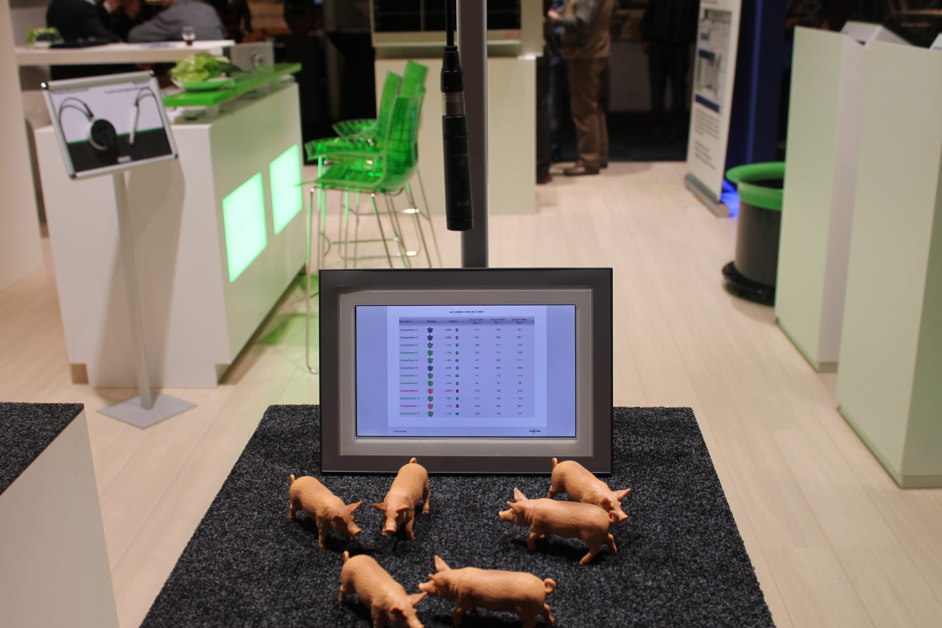 Een flinke investering, erkent ook Anja Theeuwen van Fancom. “Onderzoeken op VIC Sterksel hebben echter wel aangetoond dat de hoestmonitor wel eerder ziektebeelden signaleert. Drie dagen nadat de hoestmonitor aangaf dat een afdeling onregelmatig hoestgedrag vertoonde, constateerde de verzorger pas de klinische verschijnselen.” Fancom ziet vooral mogelijkheden voor bedrijven die één hok per afdeling willen uitrusten met de Hoestmonitor.