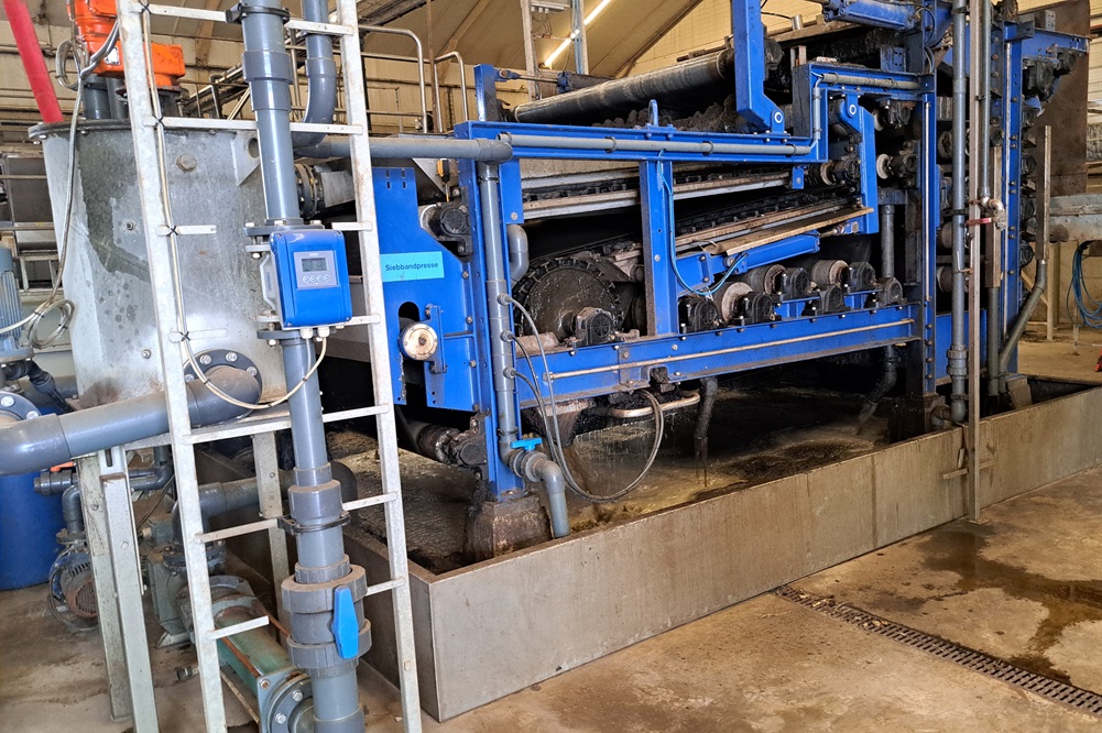 Alders heeft een vergunning voor de verwerking van 135.000 kubieke meter drijfmest per jaar. Dat is voornamelijk varkensmest, afkomstig van bedrijven binnen een straal van tien kilometer. Het mestoverschot van zijn melkvee wordt ook verwerkt in de installatie, maar dit is slechts een klein deel van het totaal. In de installatie wordt de mest eerst geperst. De dikke fractie bevat nagenoeg alle fosfaat. Deze wordt geexporteerd naar Frankrijk. “We zorgen zo voor meststoffen in graanregio’s die grondstoffen voor Nederlands varkensvoer leveren. Zo maken we de kringloop rond”, vertelt Alders.