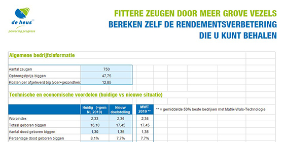 Meer rendement door extra vezels? Het blijkt dat meer grove vezels in het voer zeugen fitter maakt en zorgt voor betere technische resultaten. Maar levert het ook meer op? Je kunt nu eenvoudig berekenen wat er met je economisch resultaat gebeurt als je technische resultaat verbetert.